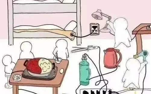 3.私自乱拉乱接电线。宿舍内电源线众多,私拉乱接电线容易导致划破绝缘层造成线路短路,或因接触不良发热引起火灾。
