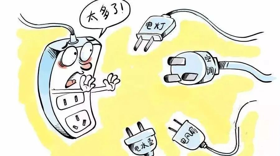 不要让多个大功率电器同时放在一个插线板上,容易导致线路超负荷运载甚至短路引发火灾。
