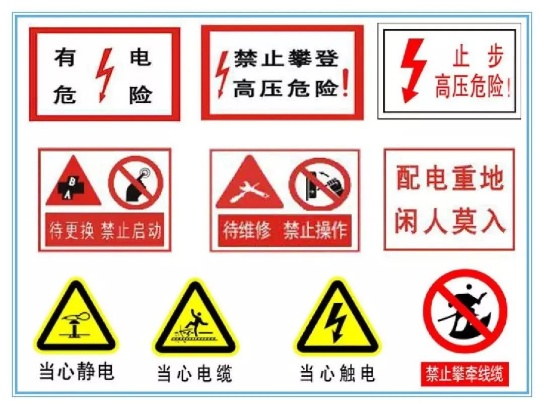 红色:用来标志禁止、停止的信息,遇到红色标志,应该严禁触摸。黄色:用来标志注意危险。如“当心触电”“注意安全”等。